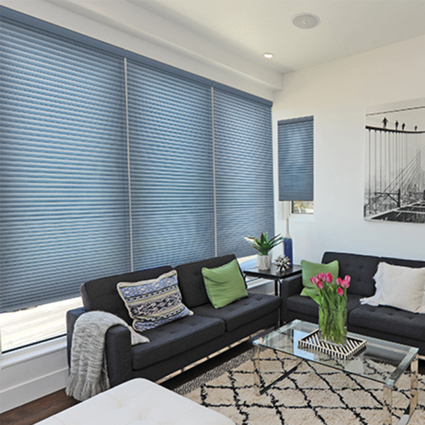 Cellular shades, or honeycomb shades, are one of the most energy efficient window coverings you can buy. They use a series of honeycomb-like cell pockets to trap air around your windows, keeping your rooms warm in the winter and cool in the summer.