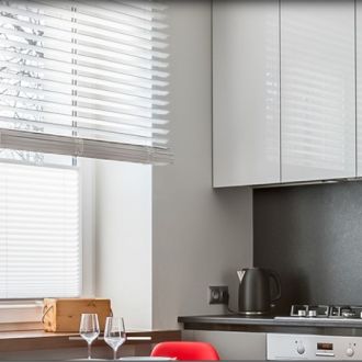 Marqi Blinds Windows classic Faux Wood Blinds are easy to clean, will not warp in high-humidity areas, and are well-suited for any room in your home, especially bathrooms and kitchens with their moisture resistant PVC slats.