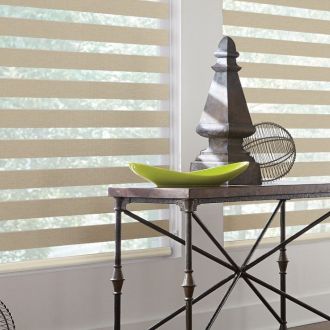 Blackout shades offer a modern take on light control with their alternating sheer and opaque fabrics.
