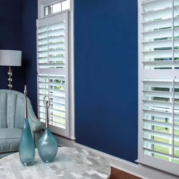 Choose from a variety of designer-inspired materials and finishes. In addition to their lasting beauty, shutters provide exceptional light adjustment with their movable louvers.